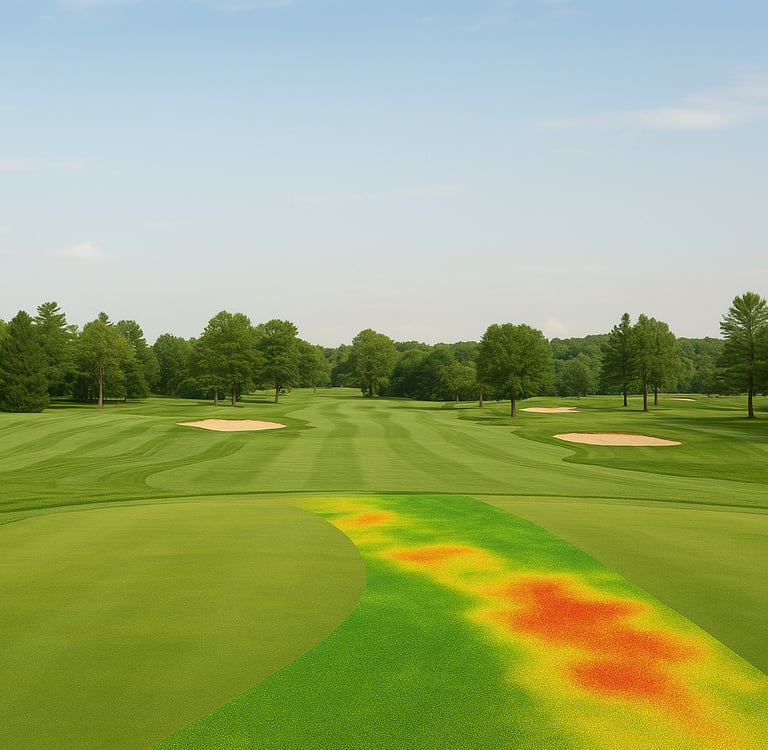 We break your course into clear zones—greens, fairways, tees, and rough—and assign health scores to each. You'll get intuitive, color-coded stress maps: